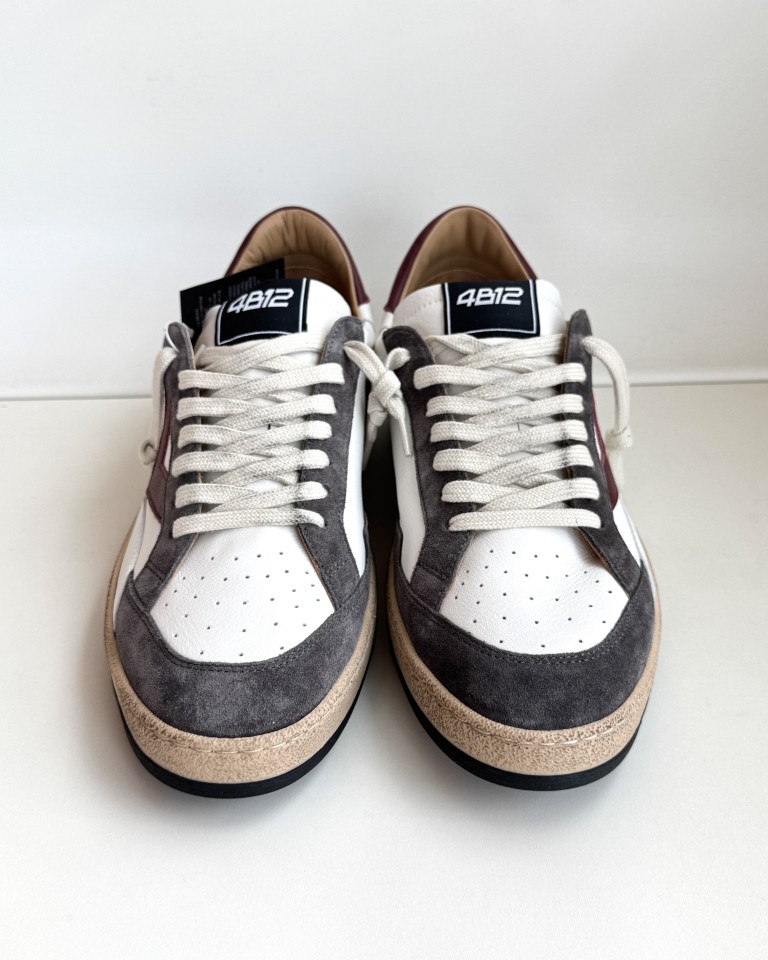 4B12 sneakers in morbida pelle bianca con rifiniture in camoscio grigio.