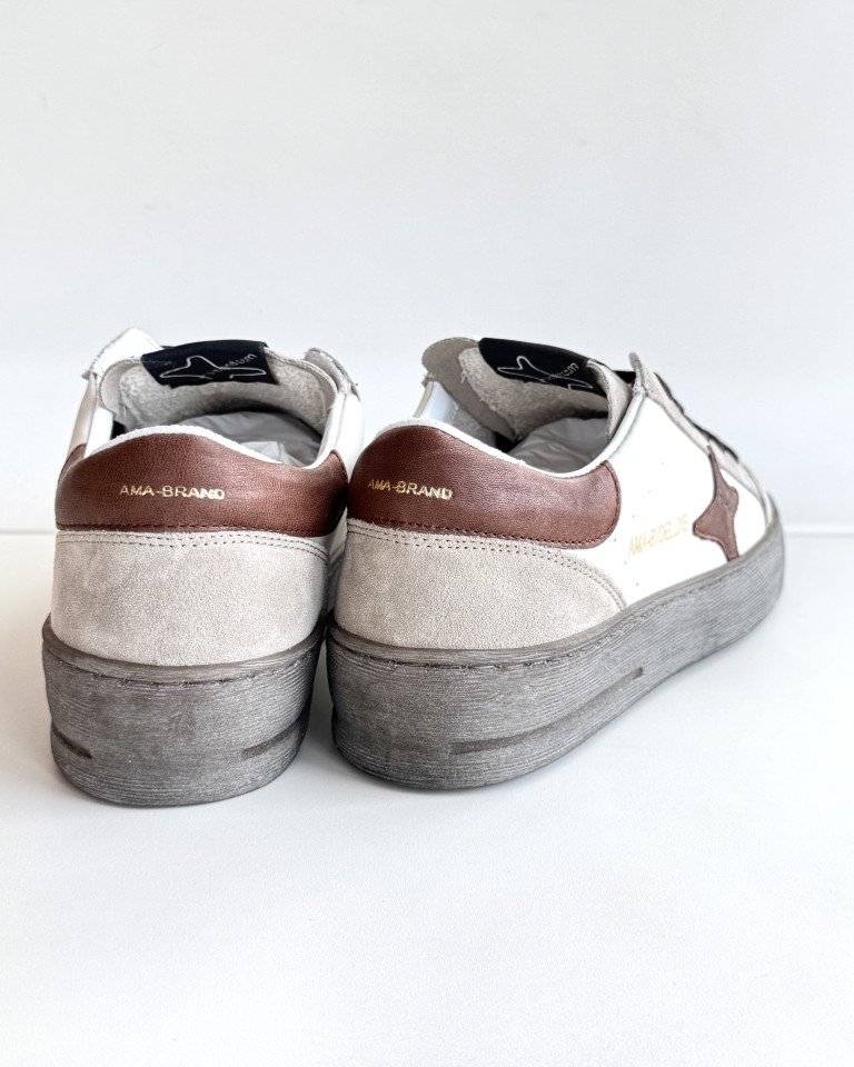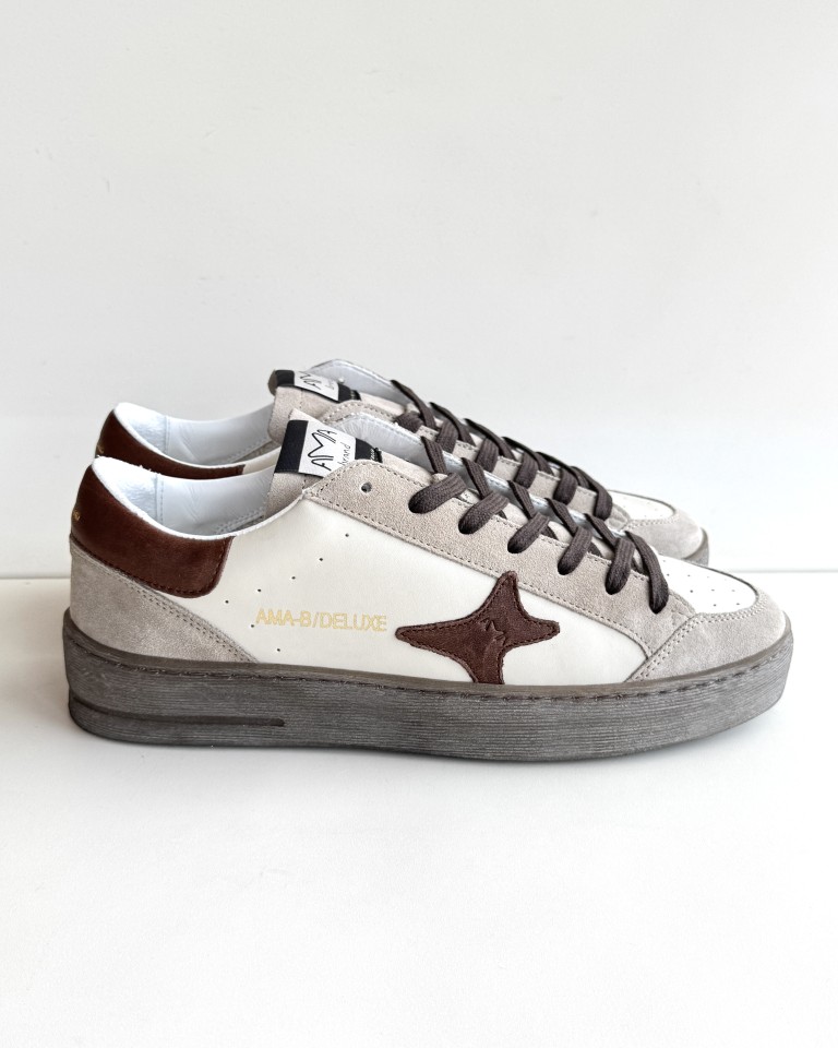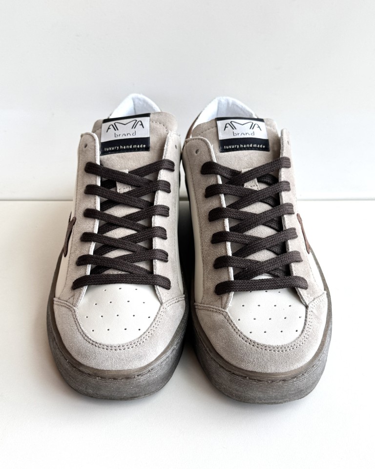 Ama Brand Slam Sneakers Uomo Bianco Latte E Cuoio