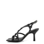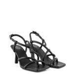Ash sandalo in pelle nera con laccetti tubolari incrociati e infradito. Chiusura con fibbia regolabile colore argento. Sottopiede in pelle, forma quadrata, pianta larga. Calzata ampia.