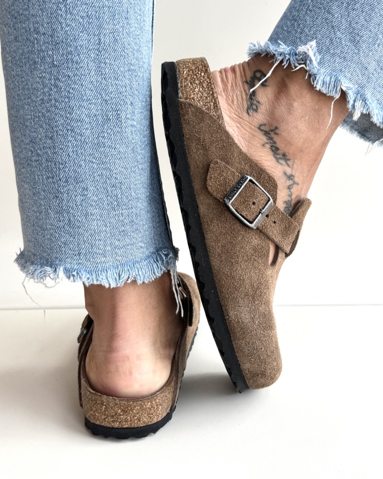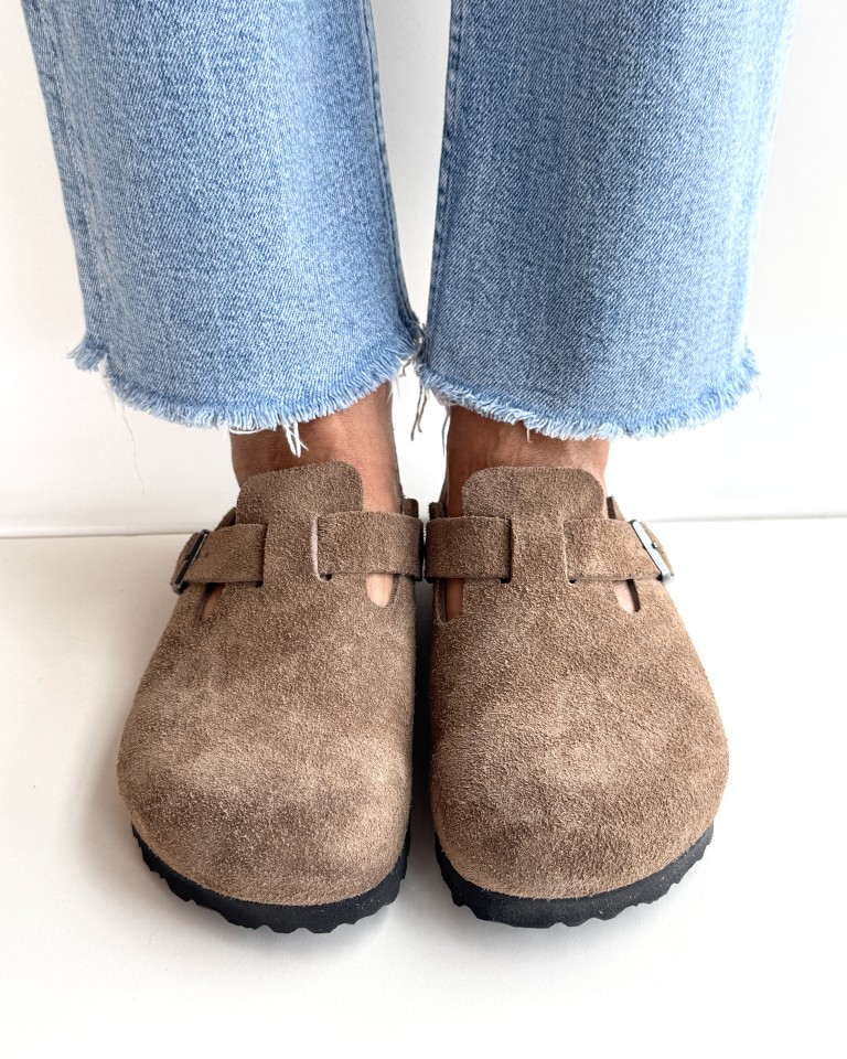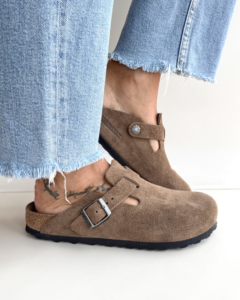 BIrkenstock Boston Donna In Camoscio Dark Tea Con Plantare Morbido