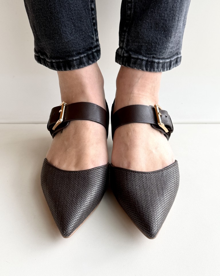 Laccetto sul collo del piede regolabile con fibbia oro.