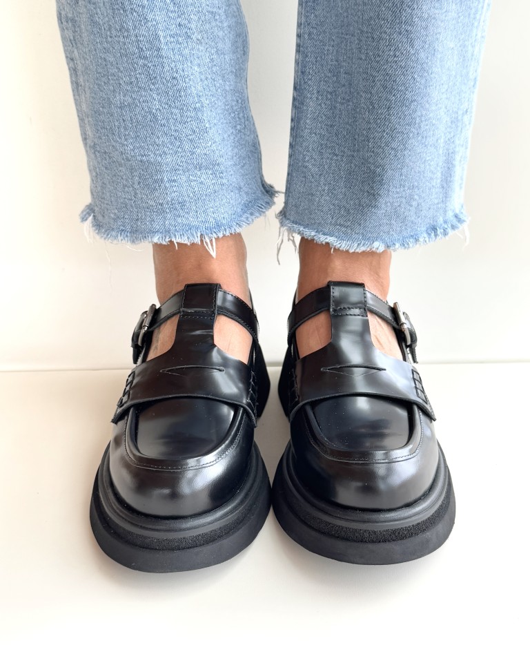 Bruno Premi scarpa in pelle abrasivata nera con allacciatura sul collo del piede.
