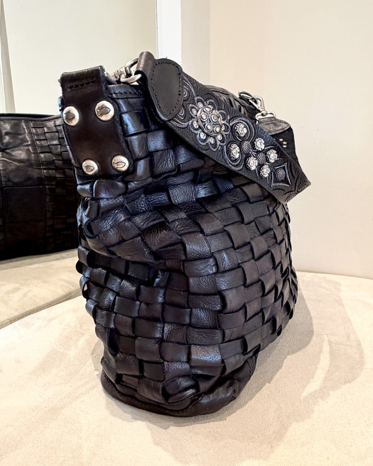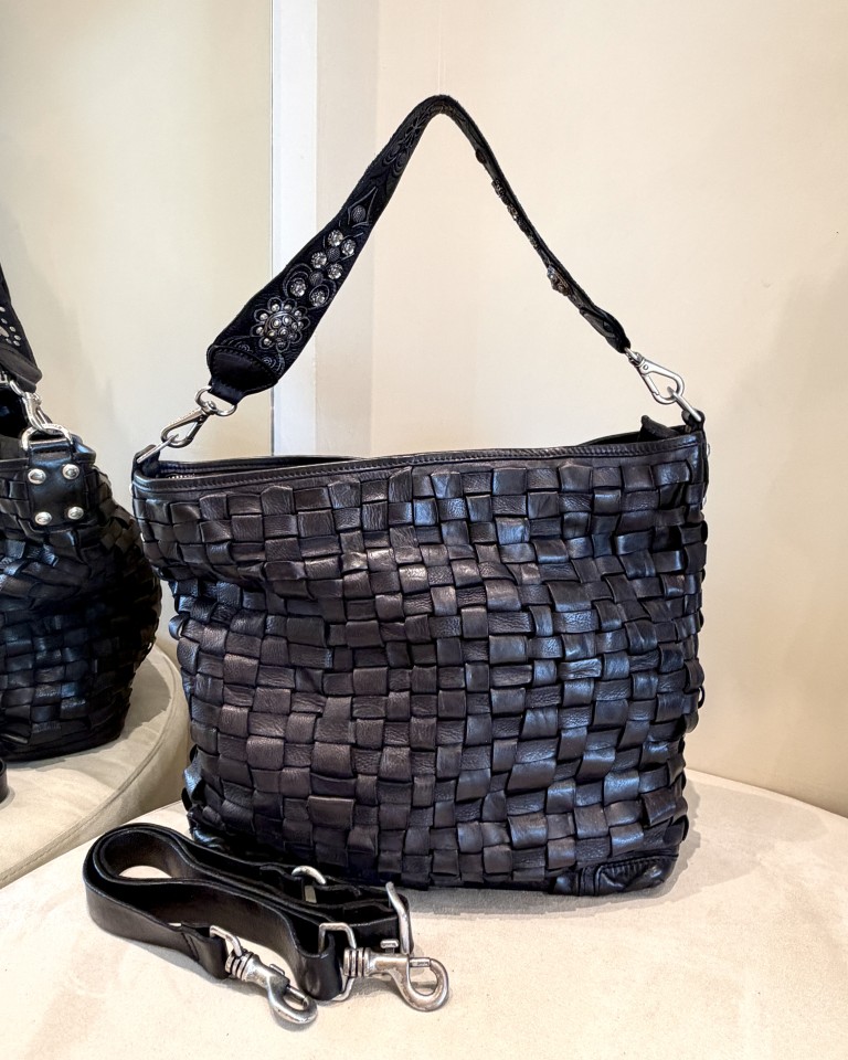 Campomaggi borsa a spalla in pelle intrecciata nera.