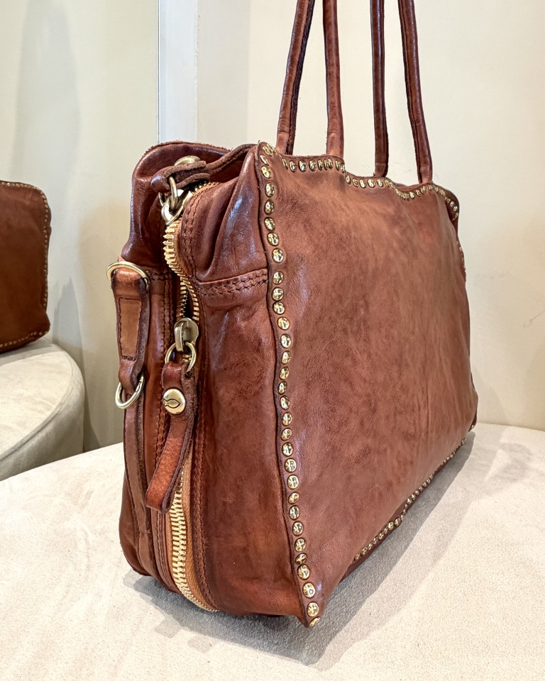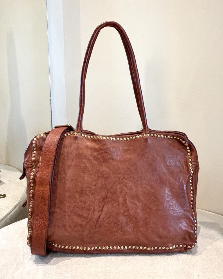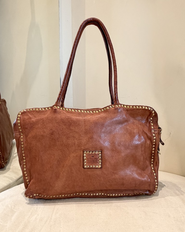 Campomaggi shopping rettangolare in pelle colore cuoio.