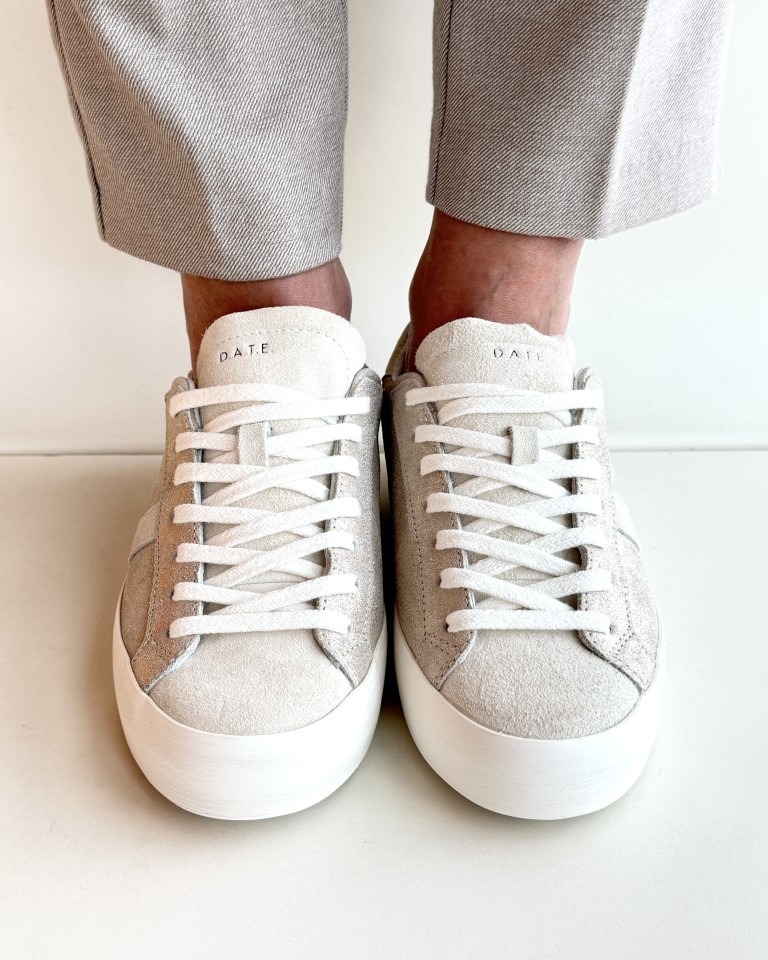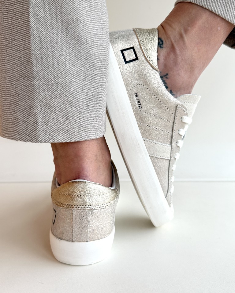 D.A.T.E. Hill low sneakers in pelle glitterata colore platino.