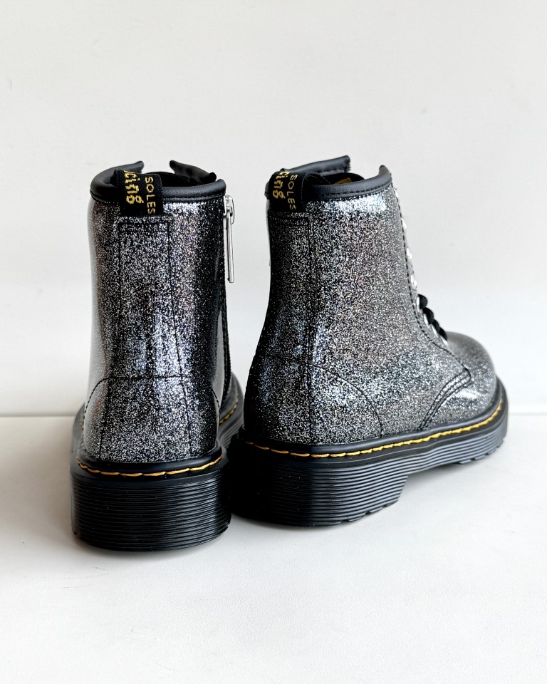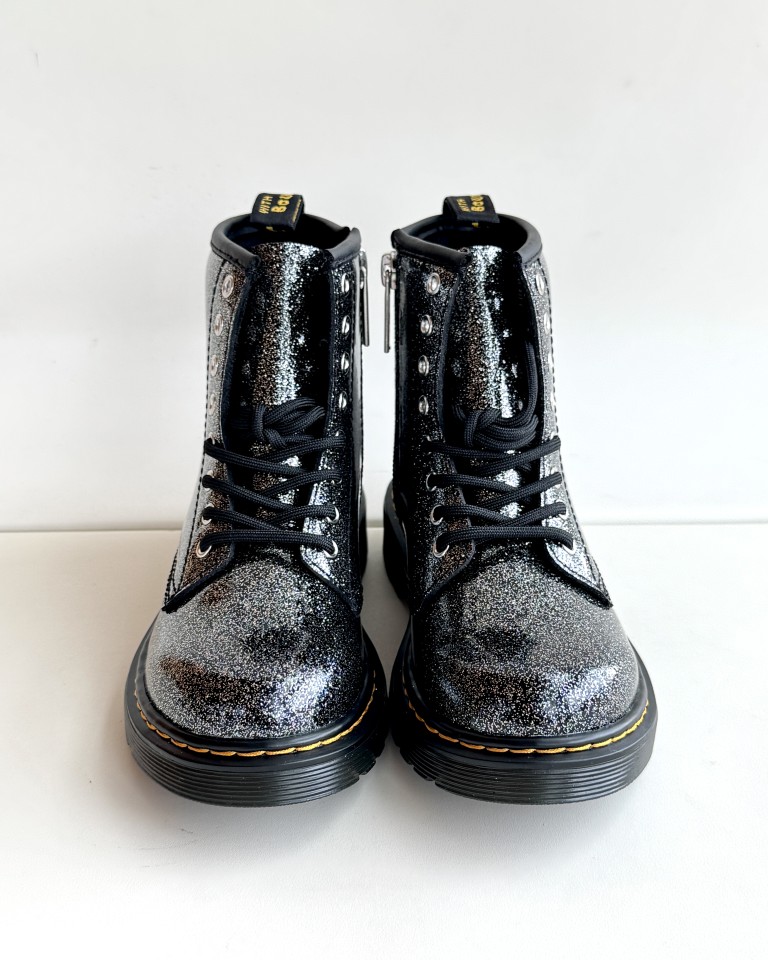 Dr. Martens Anfibio Bambina Nero Con Glitter Argento