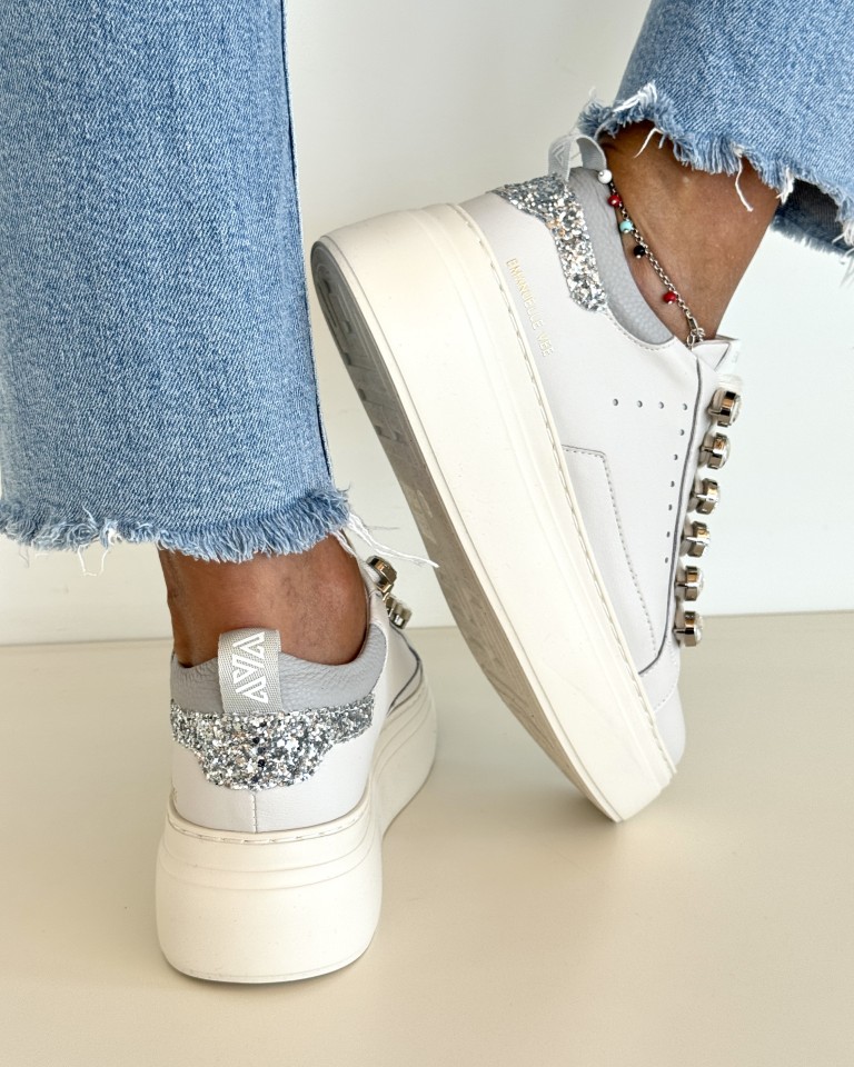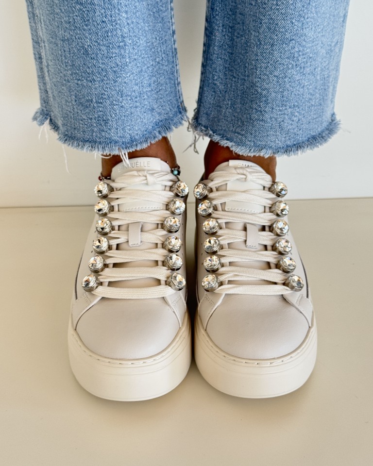 Emanuelle Vee Sneakers Donna Avorio Con Cristalli