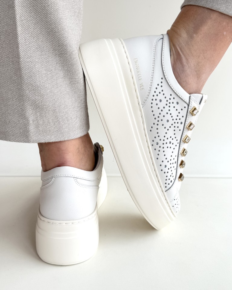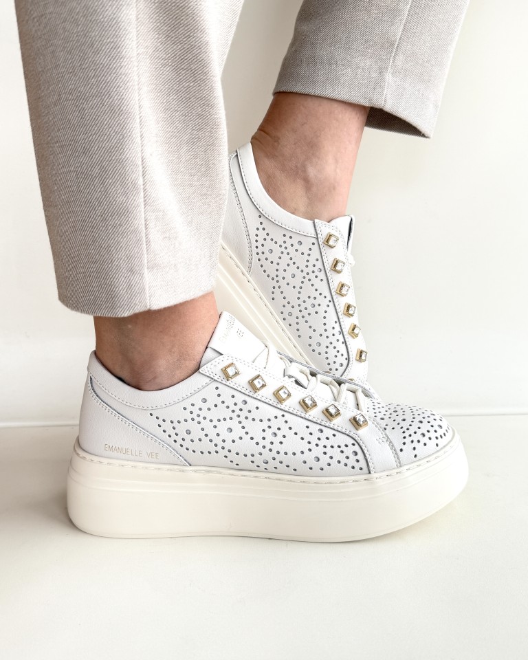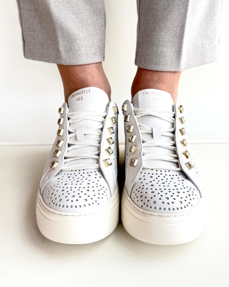 Emanuelle Vee sneakers leggera in pelle traforata colore avorio.