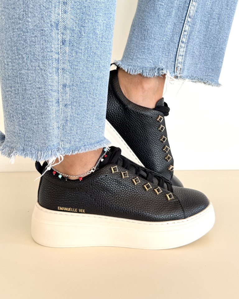 Emanuelle vee sneakers in pelle martellata nera.