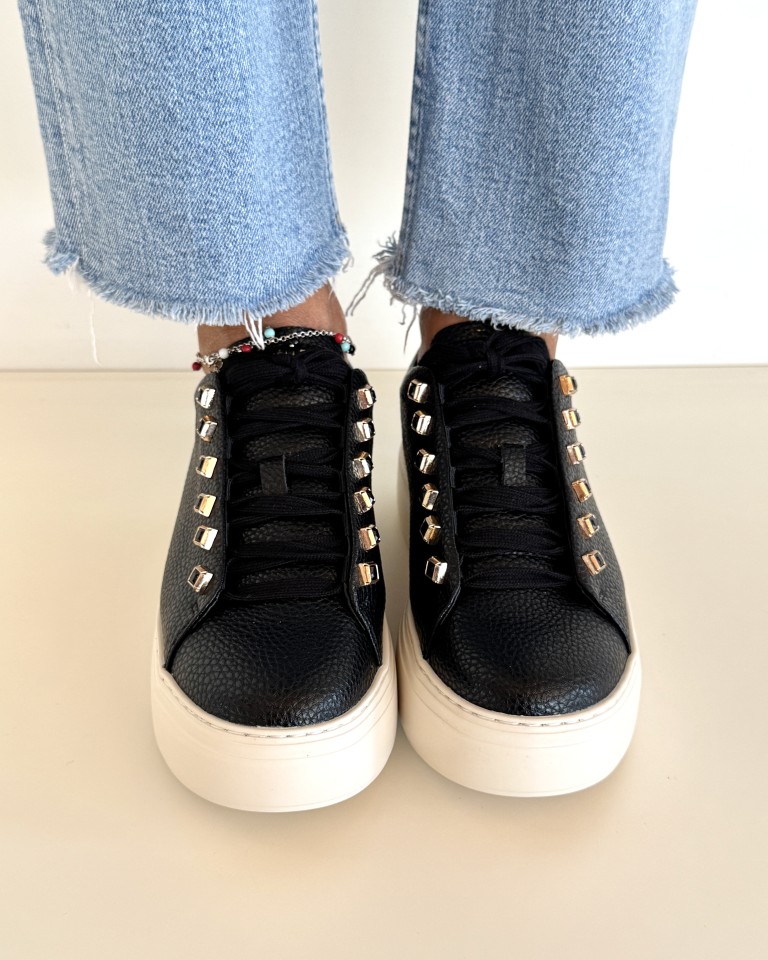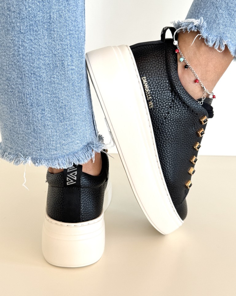 Emanuelle Vee Sneakers Donna In Pelle Martellata Nera Con Cristalli
