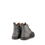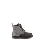 Grunland Jr. anfibio bambina in glitter nero e grigio scuro. Allacciatura a cinque fori, lacci in cotone nero e zip interna per la calzata.