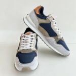 Hoff Biarritz sneakers uomo, tomaia in tessuto blu e dettagli in camoscio grigio, verde, beige e arancio.