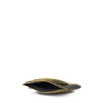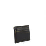Momo Design portacarte uomo in pelle nera con bordature gialle. Tasca centrale per banconote e nr. Otto tasche per carte di credito.