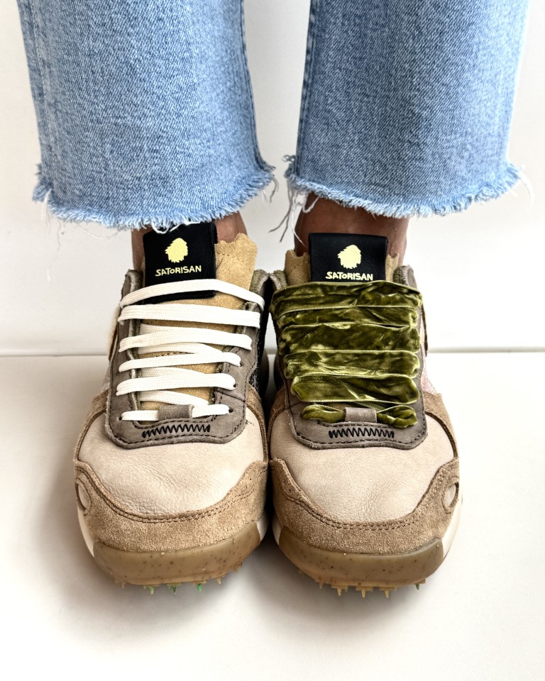 Satorisan Chacrona sneakers in morbida pelle beige e camoscio sabbia.