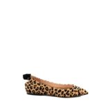 Status ballerina in camoscio stampa animalier con apertura e fiocco sul tallone.