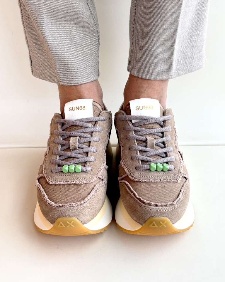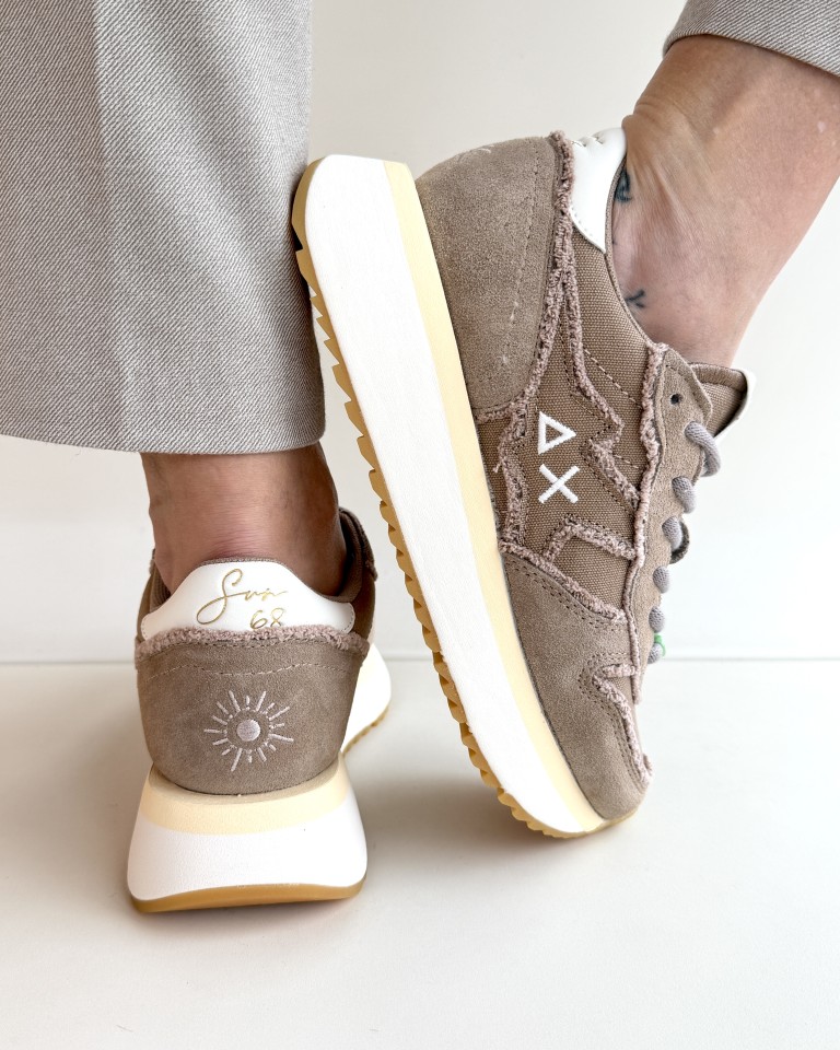 Sun 68 sneakers in canvas e crosta colore nocciola.