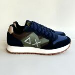 Sun 68 sneakers uomo, tomaia in tela e camoscio blu, dettagli in tela marrone.