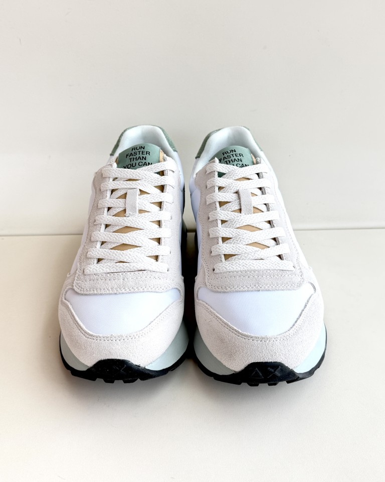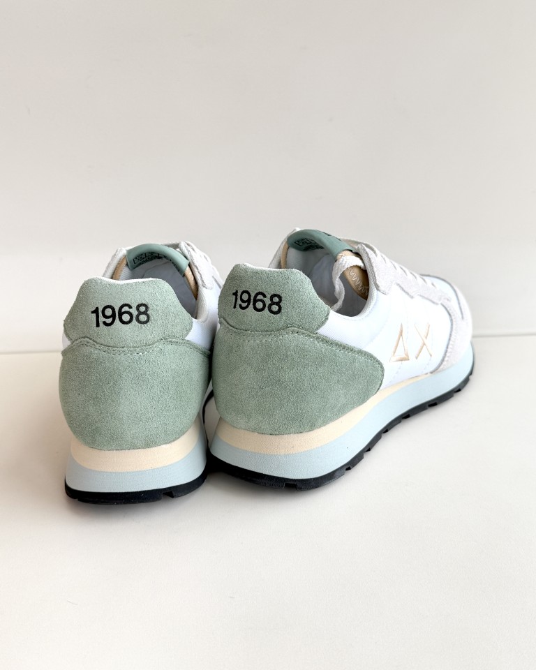 Sun 68 sneakers in tessuto bianco e camoscio color ghiaccio.