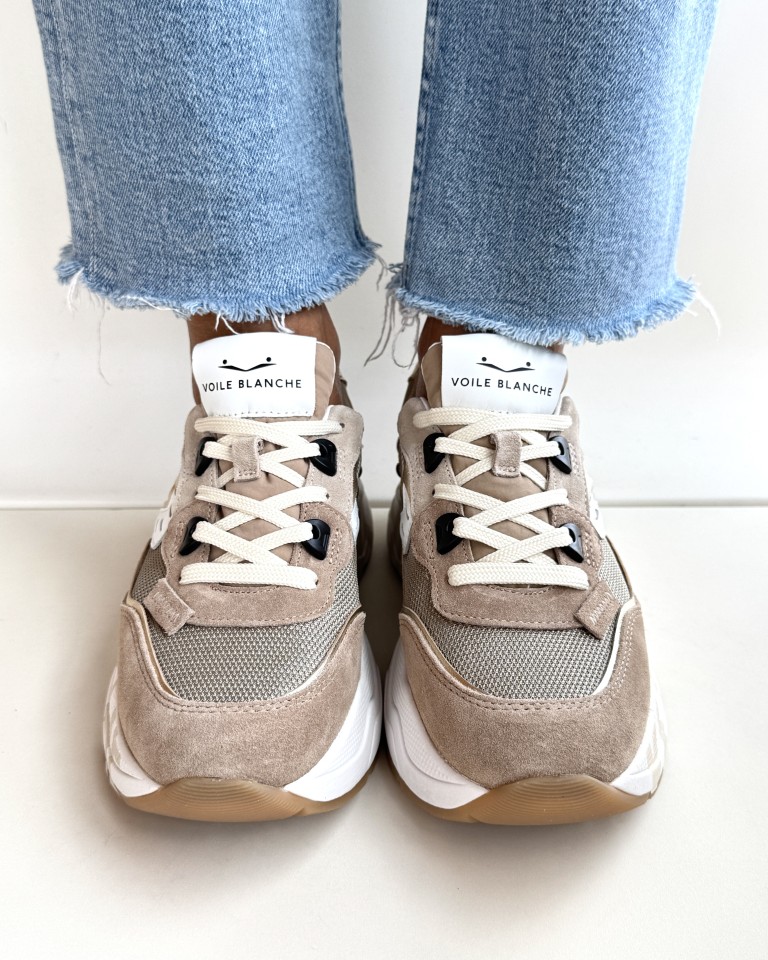 Voile Blanche Club sneakers in nylon, tela e camoscio colore beige.