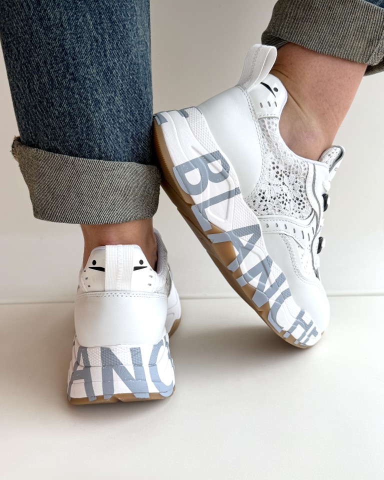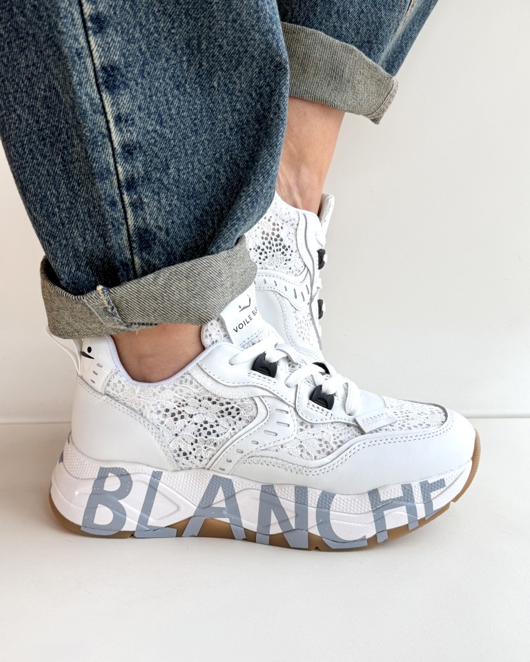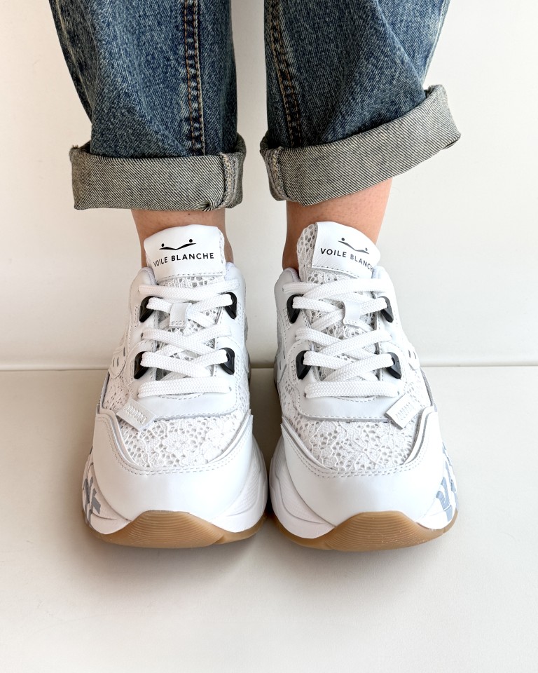 Voile Blanche club sneakers in pelle e pizzo bianco.